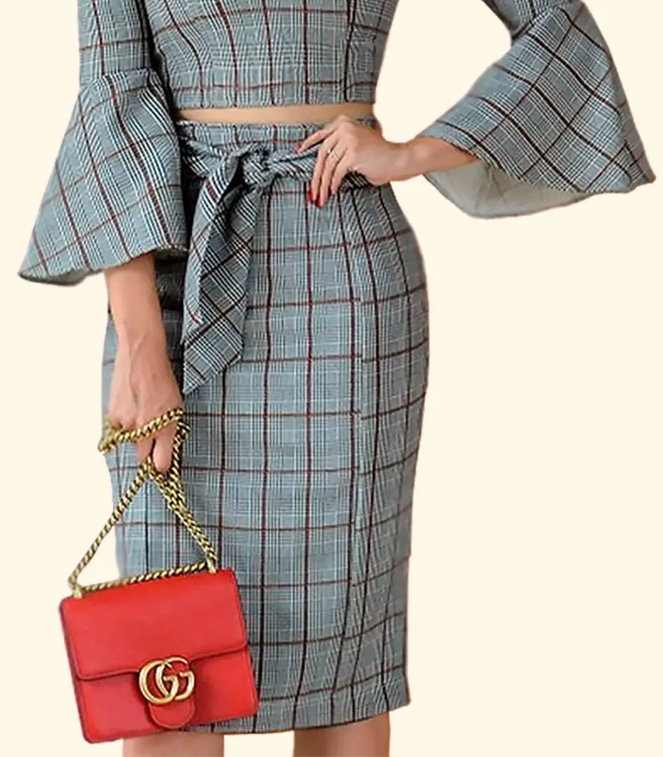 Saia Xadrez Vermelho Detalhe Amarrar