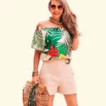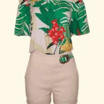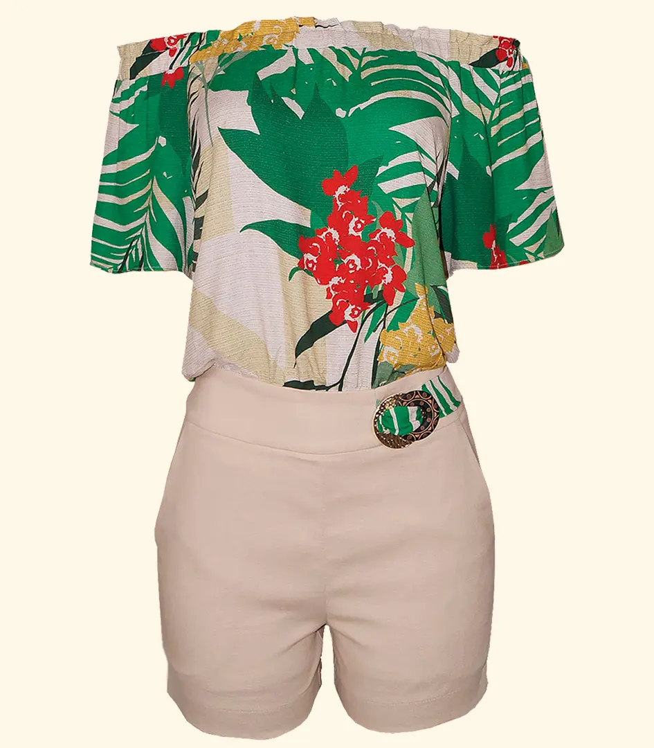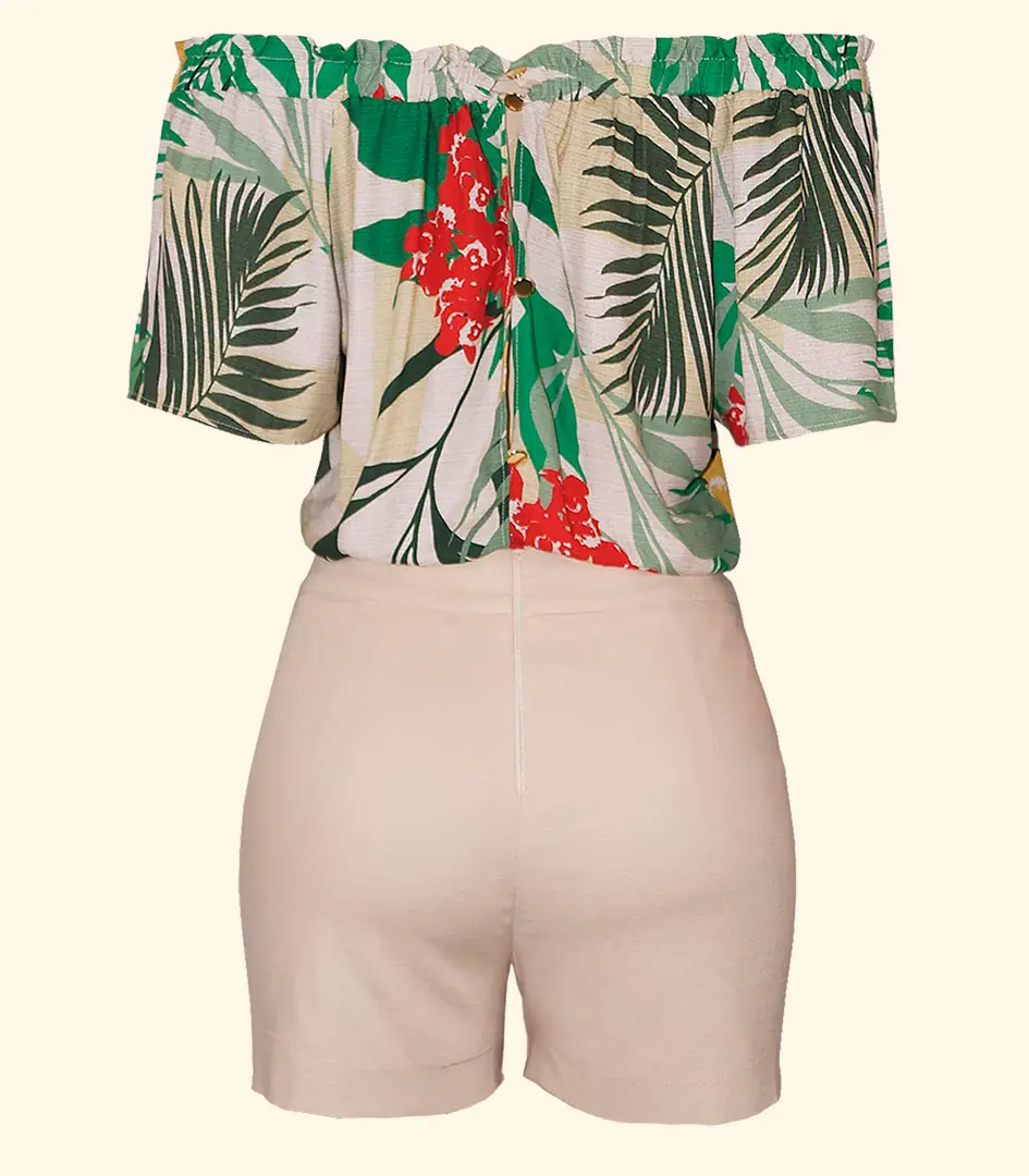 Macaquinho Linho Ombro a Ombro Estampado