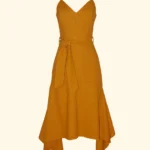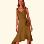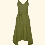 Vestido Linho Midi Alça Corrente Acrílico
