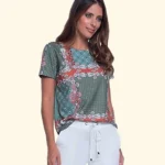 Blusa Estampa Patchwork Detalhe Pence